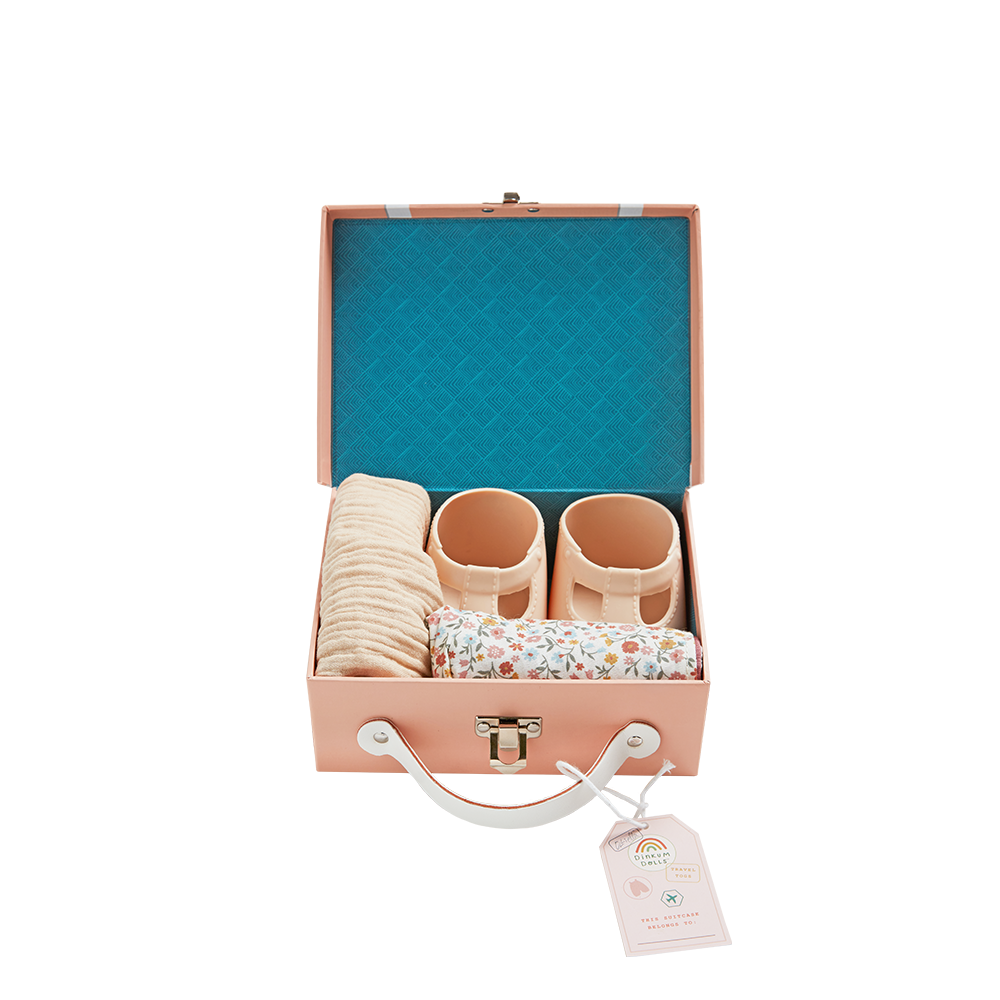 Our most-loved Travel Togs are back! Travel Togs suitcases are a mini of our signature See-Ya Suitcase and are packed with an outfit designed to be interchangeable with everything in your Dinkum Doll’s wardrobe, accessories, shoes and a passport sticker book too! Your little one’s Dinkum Doll will be forever play and vacay-ready! Pair with a to complete the look!