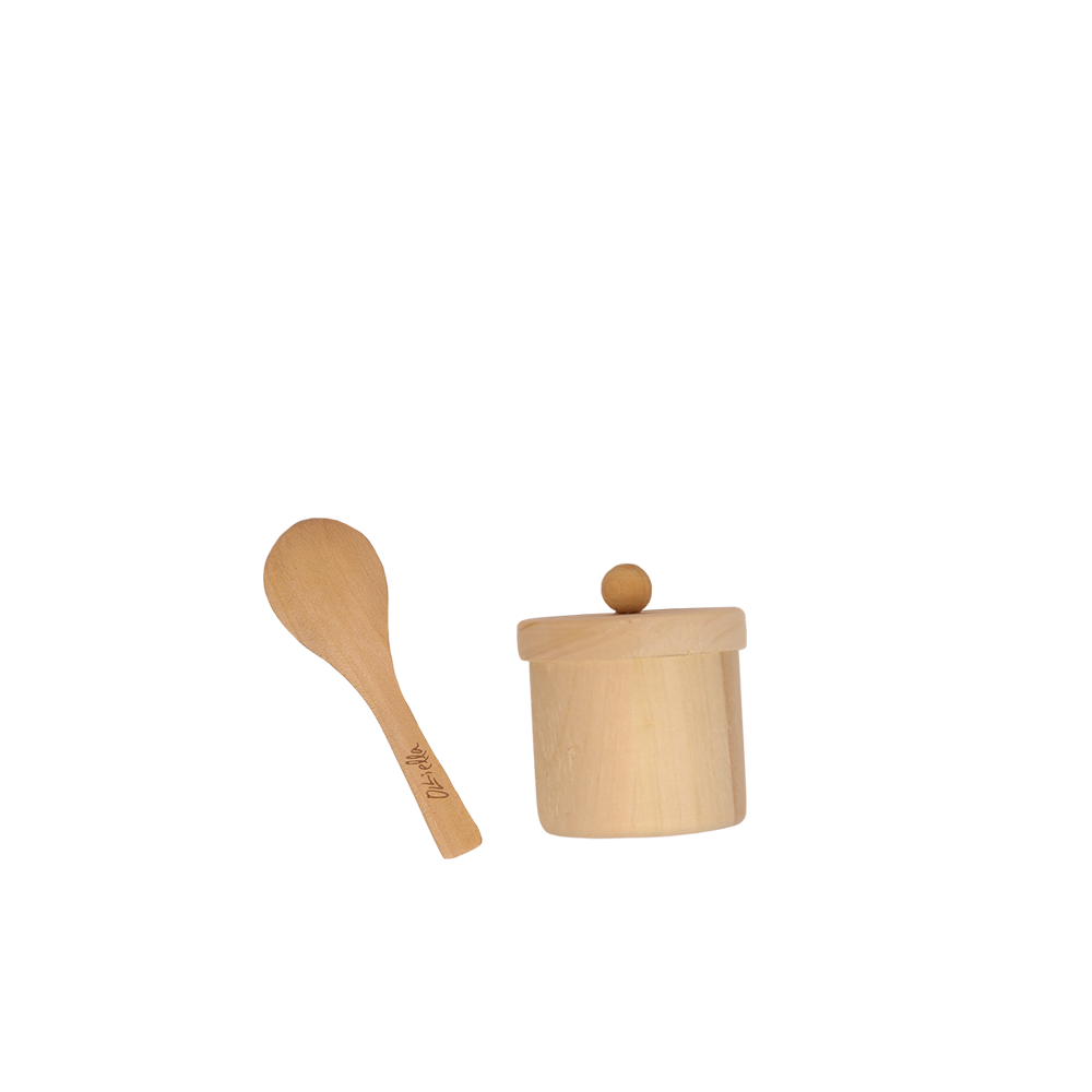 The loveliest little jar and spoon set crafted from 100% Pinewood, the Feeding Set is smooth to the touch and made with little hands in mind. With an easily removable lid, and soft rounded spoon, this feeding set will provide hours of imaginary play for the little chef.