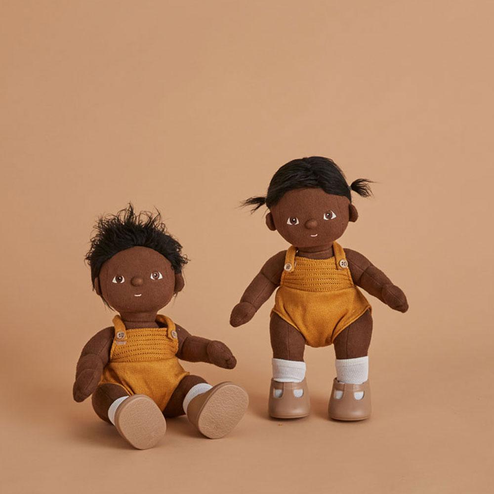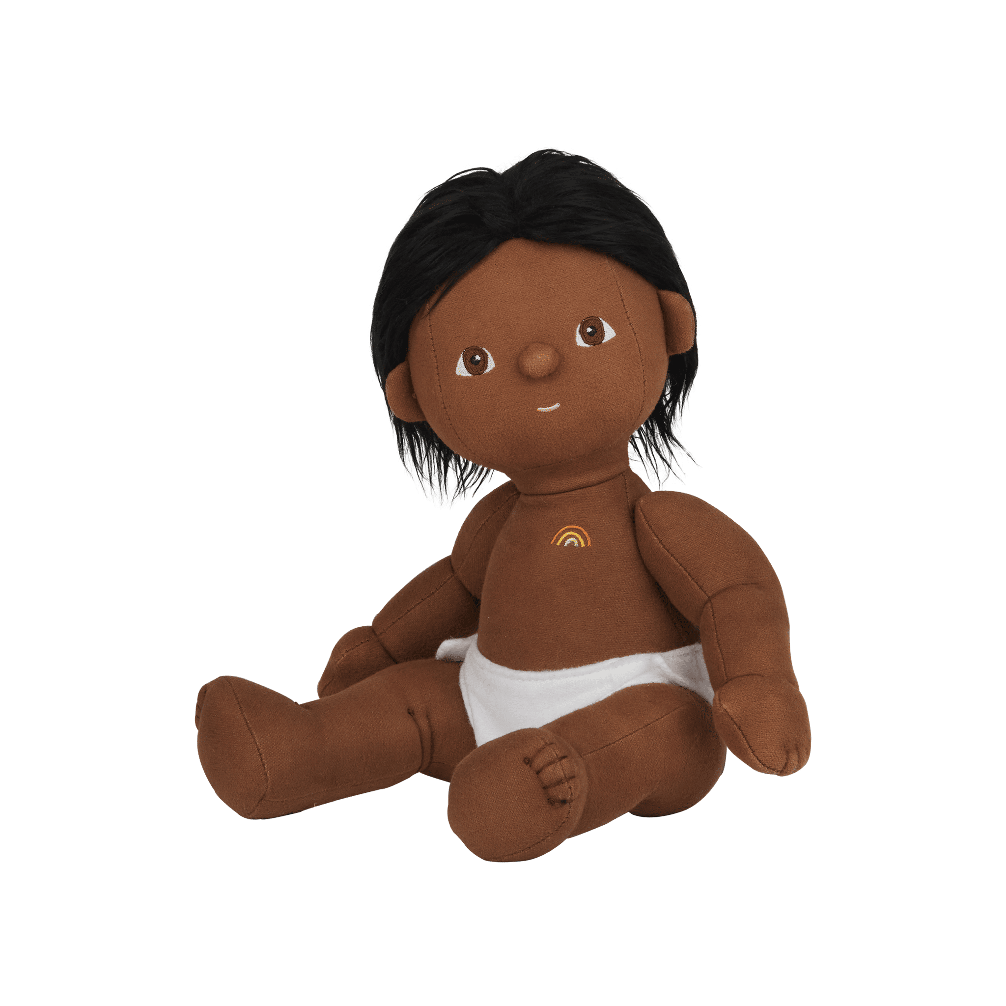 Step into a world of love and wonder with the marvellous Dinkum Dolls! Our friends are ready for endless adventures ~ snuggle them, dress them up, and style their hair! With posable arms, legs, and head, these Dolls can even sit and stand tall when wearing their shoes. Crafted from the softest, snuggliest cotton outer, Dinkum Dolls aren’t just for playtime ~ they’re perfect for cosy cuddles and love to sleep over. Every little detail is carefully embroidered, from their twinkling eyes and adorable mouth to the delightful rainbow right over their hearts. Just like a rainbow, they’re all special in their own delightful way! It’s up to your child to choose who their Dinkum Doll is, and with their loveable faces, posable bodies and huggable selves, the fun and imaginative playtime possibilities are endless. Each Doll comes with its own removable gender-neutral outfit, socks, nappy, and shoes. Add to their wardrobe with our . Dinkum Dolls love to play with their younger siblings the , , and ~ collect the whole tribe! So, get ready for a world of love, wonder, and countless adventures alongside your Dinkum Doll. They’re waiting to be cherished, played with, and loved like no other!