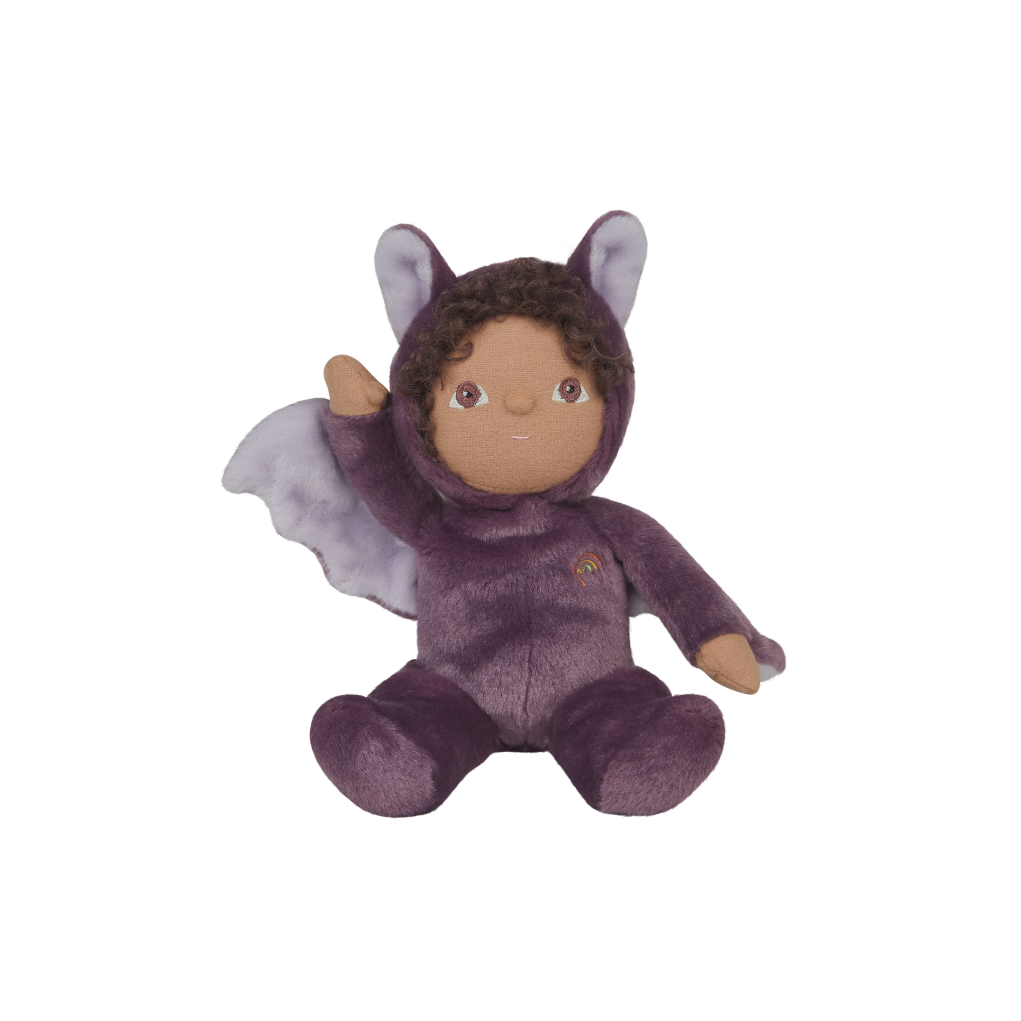 Why You’ll Love It: Bowie Bat zips and swoops through the treetops of Holiday Hollow, where the night air hums with secrets and the moon seems to wink just at him. Peek under his wings or into his softly curved ears and you’ll find a little Halloween magic – they glow gently in the dark, guiding him through starlit skies and cozy bedtime stories. Bowie loves swooping low over the forest, playing hide-and-seek in the shadows, and snuggling in close when the night gets chilly. I belong to the HOLIDAY HOLLOW realm. Discover more treats .