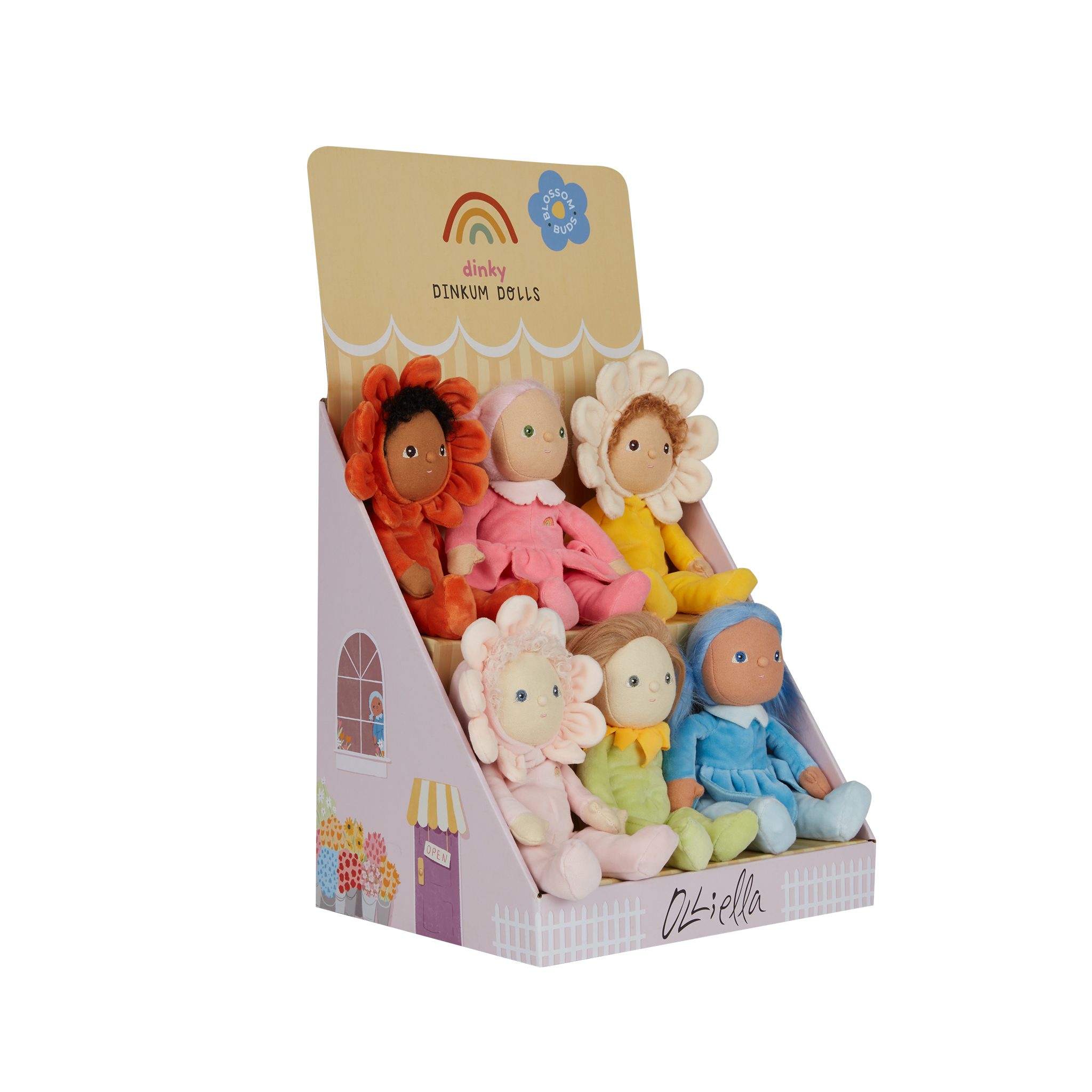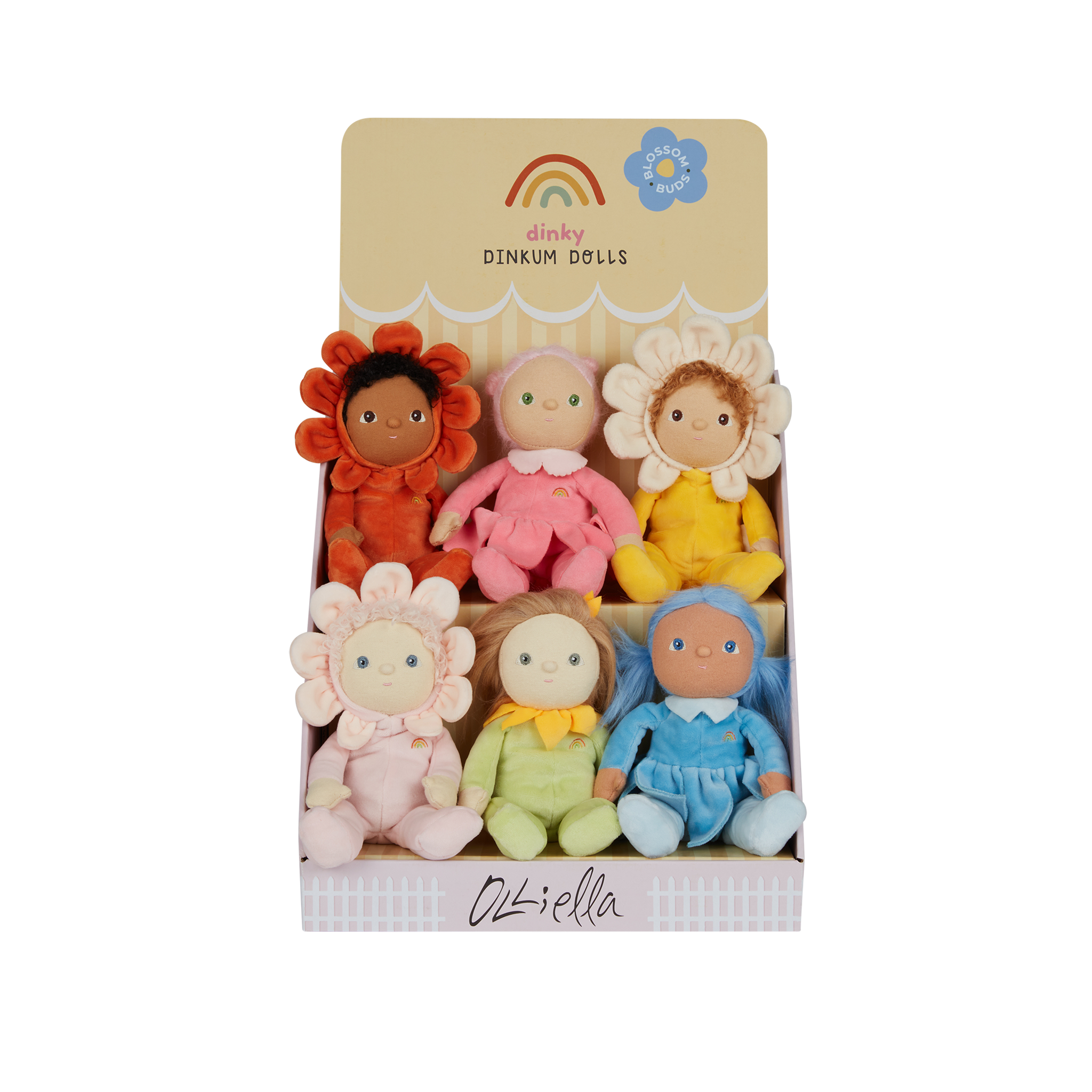 Blooming with vibrant colours, Dinky Blossom Buds are like wildflowers, spreading joy wherever they go! The sweetest and cheekiest playmates, full of collectable fun. Limited-edition and palm-sized, Dinky Dinkums are perfectly weighted in all the right places and snuggled in a velvety onesie. Dinky Dinkum Dolls Poppy, Lily, Daisy, Rose, Sunny, and Iris come packaged in flower shop-inspired cardboard stand Keep your eyes peeled for collectable scratch ‘n sniff stickers Snuggly non-removable onesies Keep track of your growing Dinky Dinkum Collection with a
