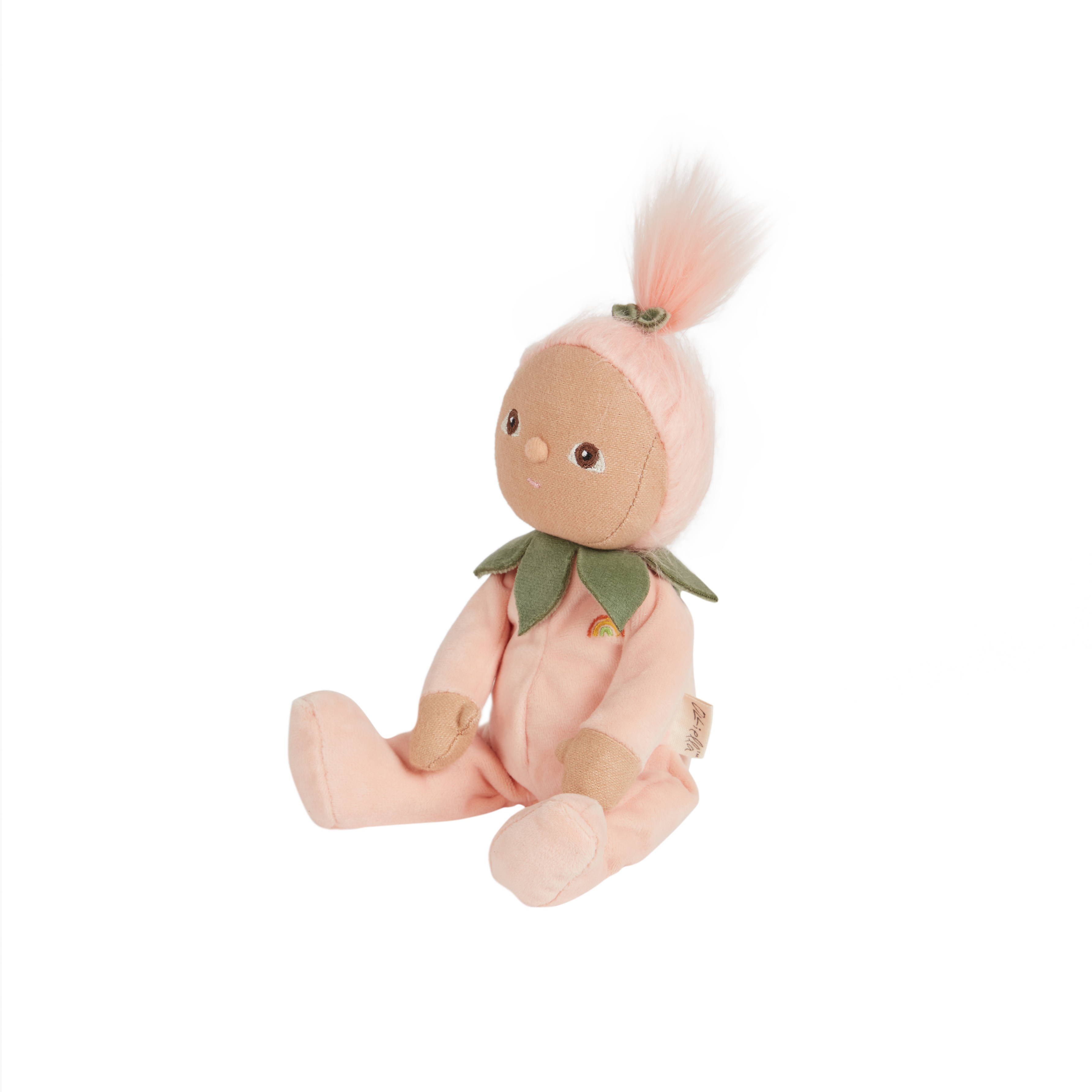 Your heart will melt when you hold them, as they snuggle floppily into the palm of your hand. Say hello to Peggy Peach! A limited-edition palm-sized playmate, perfectly weighted in all the right places, and outfitted in a snuggly plush velvety cotton making Dinky Dinkums the smallest, sweetest snuggle companion. Peggy Peach comes packaged in a vintage-inspired paper package (pssst keep your eyes peeled for a peach-scented scratch-and-sniff sticker on the tag too). Collect all the limited-edition Dinky Dinkums Fruity Cuties – , , , , and .
