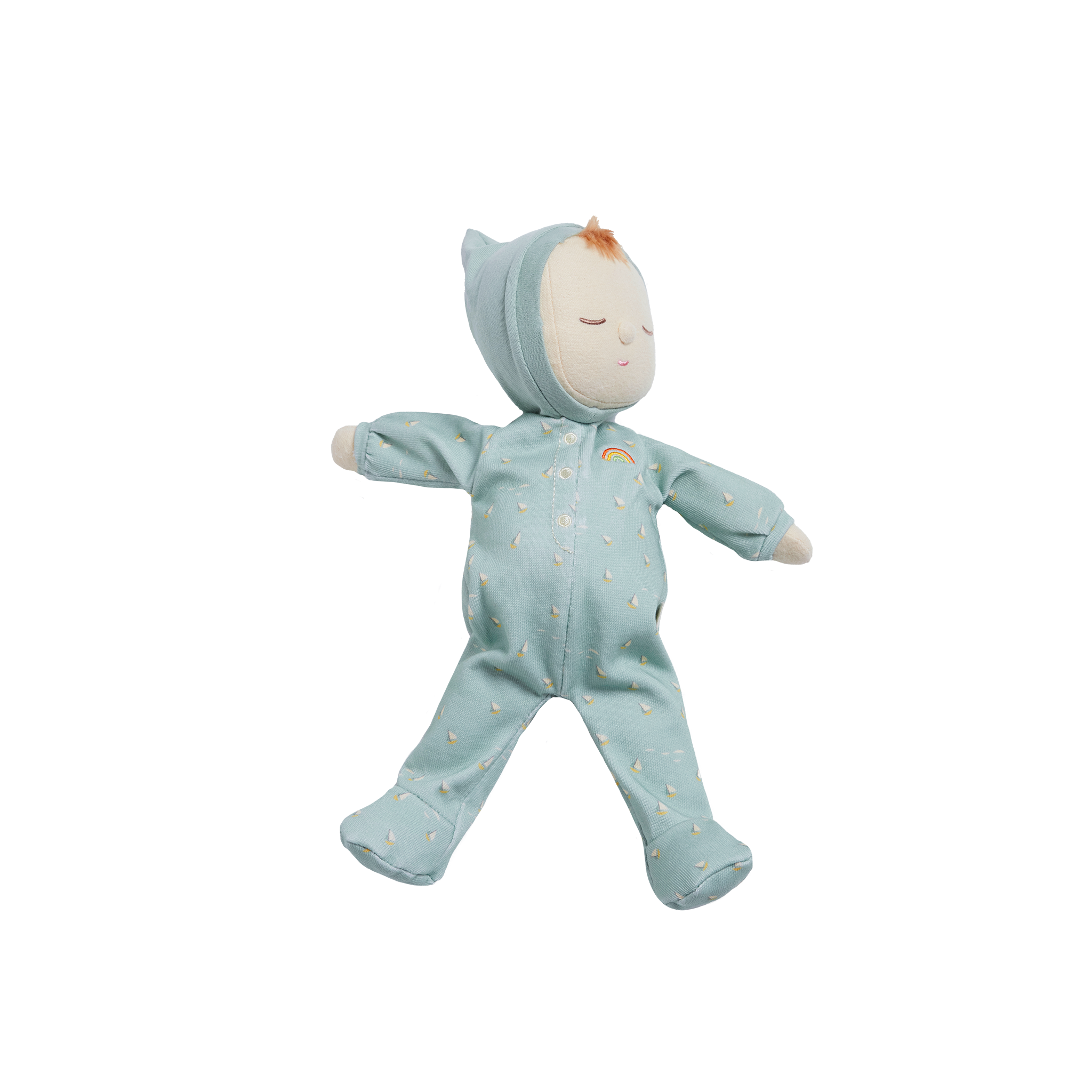 Sweetly-a-slumber and ready to snuggle, say hello to Dozy Dinkum Moppet Ocean! This limited-edition Daydream Dozy is made from 100% Cotton printed in our vintage-inspired Ocean print. Soft and precious, Moppet Ocean is made for cuddles and play and can’t wait to snooze the days away with you! Moppet Ocean is posable, made from super soft cotton and features the sweetest embroidered face with a little tuft of hair. Each Daydream Dozy Dinkum wears a non-removable suit complete with a rainbow right over their heart. Moppet Ocean is a beautiful first gift for newborn babies or would make a lovely addition to your family for older kids too. Each Daydream Dozy arrives packaged in a soft 100% cotton bag with a matching drawstring! This bag also doubles as a handy laundry bag for your Dozy when they’re in need of a wash (make sure it’s a cool, gentle machine wash only!). Little ones can keep Moppet Ocean close to heart with our .