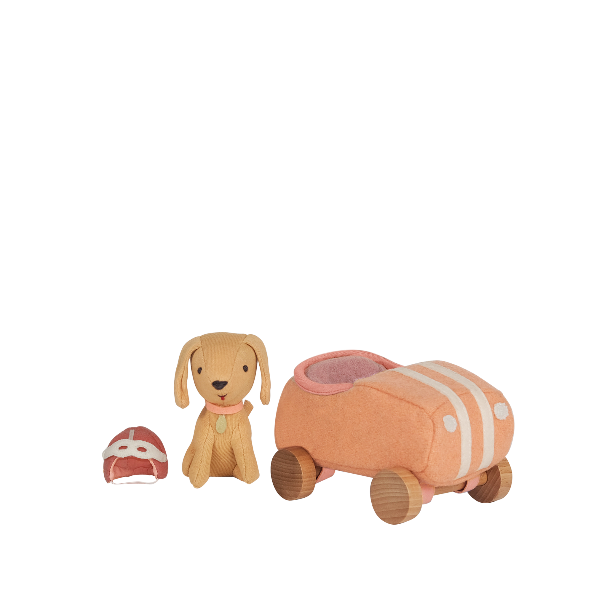 Why You’ll Love It Unleash the excitement with our Holdie World™ Dog-Gos. Sporting a speedy helmet and googles, Racer Girl brings a whole new meaning to the phrase “hot dog” behind the wheel. Pair with and prepare for a race like no other. When the day is done, Dog-Go Racer Girl loves to park in her garage box, ready to play again tomorrow. Made from a wool blend with embroidered features, nestled in a classic car with wooden wheels. Designed for little hands age 3+ to play Doubles as a beautiful nursery decoration Packaged in a collectable (and recyclable) gift-ready garage box Garage-themed box is designed to unfold and use as a pretend play prop Encourage imaginative play Mix and match! Cars also fit drivers