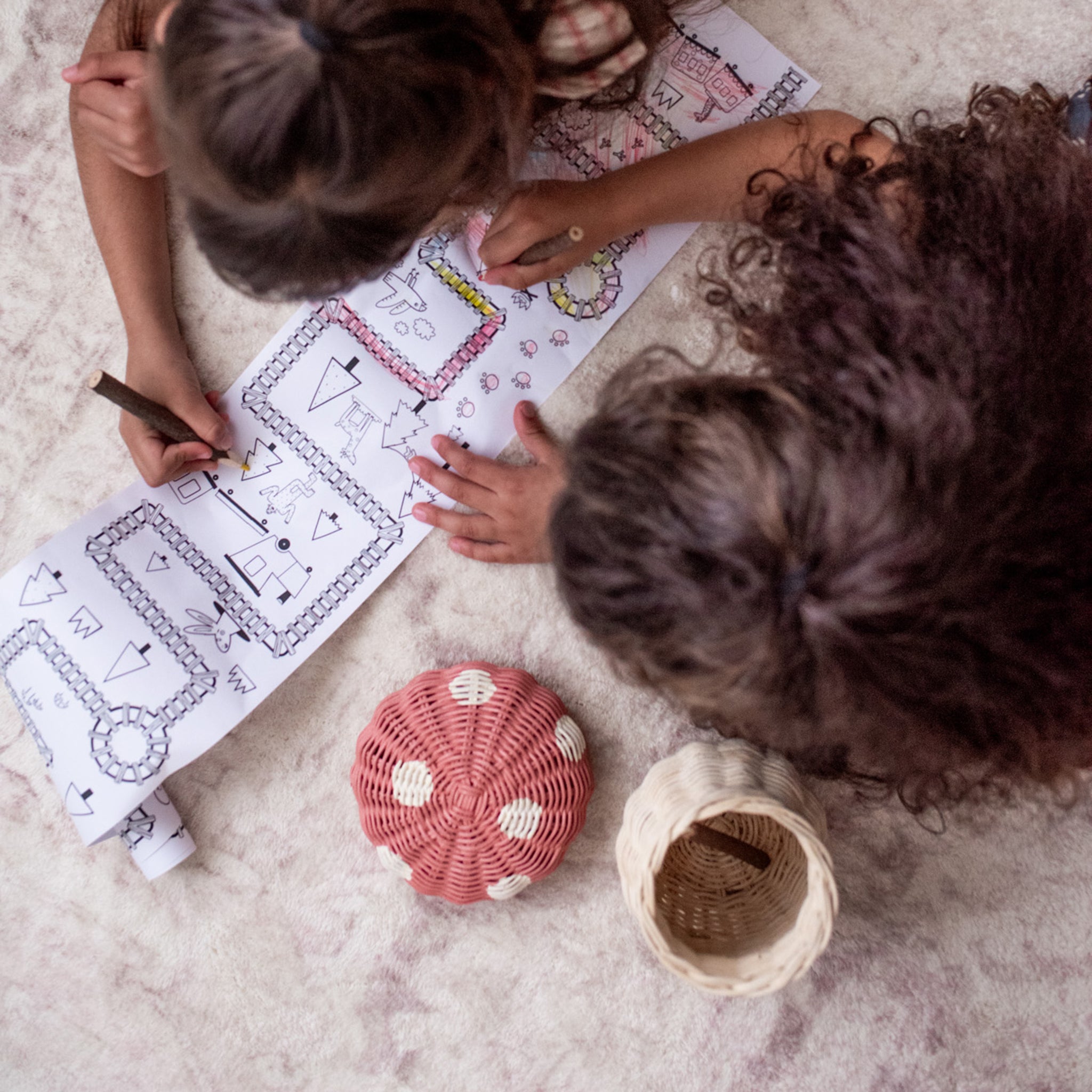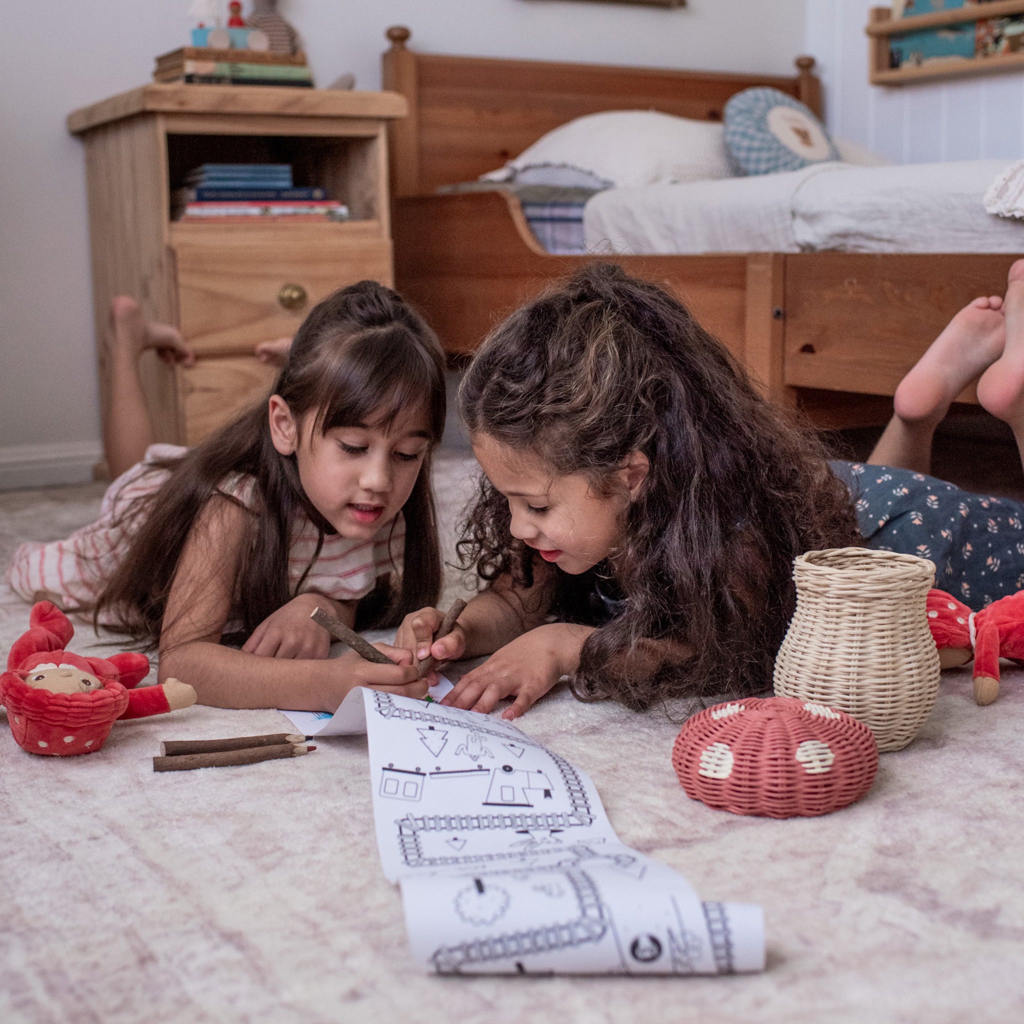 The Porcini Basket now comes in Musk – Including Twig Pencils making a stylish stationary set for crafty little ones! Inspired by woodland adventures, the Porcini Basket in Musk is handwoven from 100% Rattan. Open the cap and find a set of six beautiful hand-carved wooden Twig Pencils inside. Watch little ones create beautiful art with the easy-hold coloured pencils – pair with for the ultimate craft-ernoon! The Porcini Basket makes a magical hideaway for and other teeny treasures. Or separate the Porcini Basket to make a cup and bowl for an imaginative play prop. Bring nature to the playroom with this wonderful woodland-themed multi-use basket for creative kiddos! Style with our and for an enchanting woodland space.