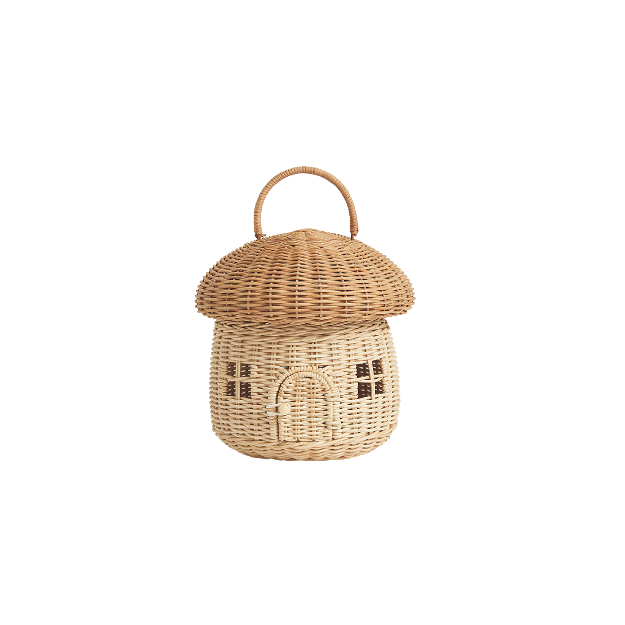 Meet the Mushroom Basket – a magical home for forest dwelling creatures, little animals, fairies, gnomes â and so much more. With a generous size, adjustable handle, and a little door (which opens and shuts), kiddos can open the Mushroom top and carry teeny treasures with them wherever they go.  Designed for adventures on the go, the Mushroom Basket makes the perfect portable home for  too! Made from 100% Natural Rattan, the Mushroom Basket has a flat base and can be displayed upright. Use it as a carry bag or decorative basket.Â