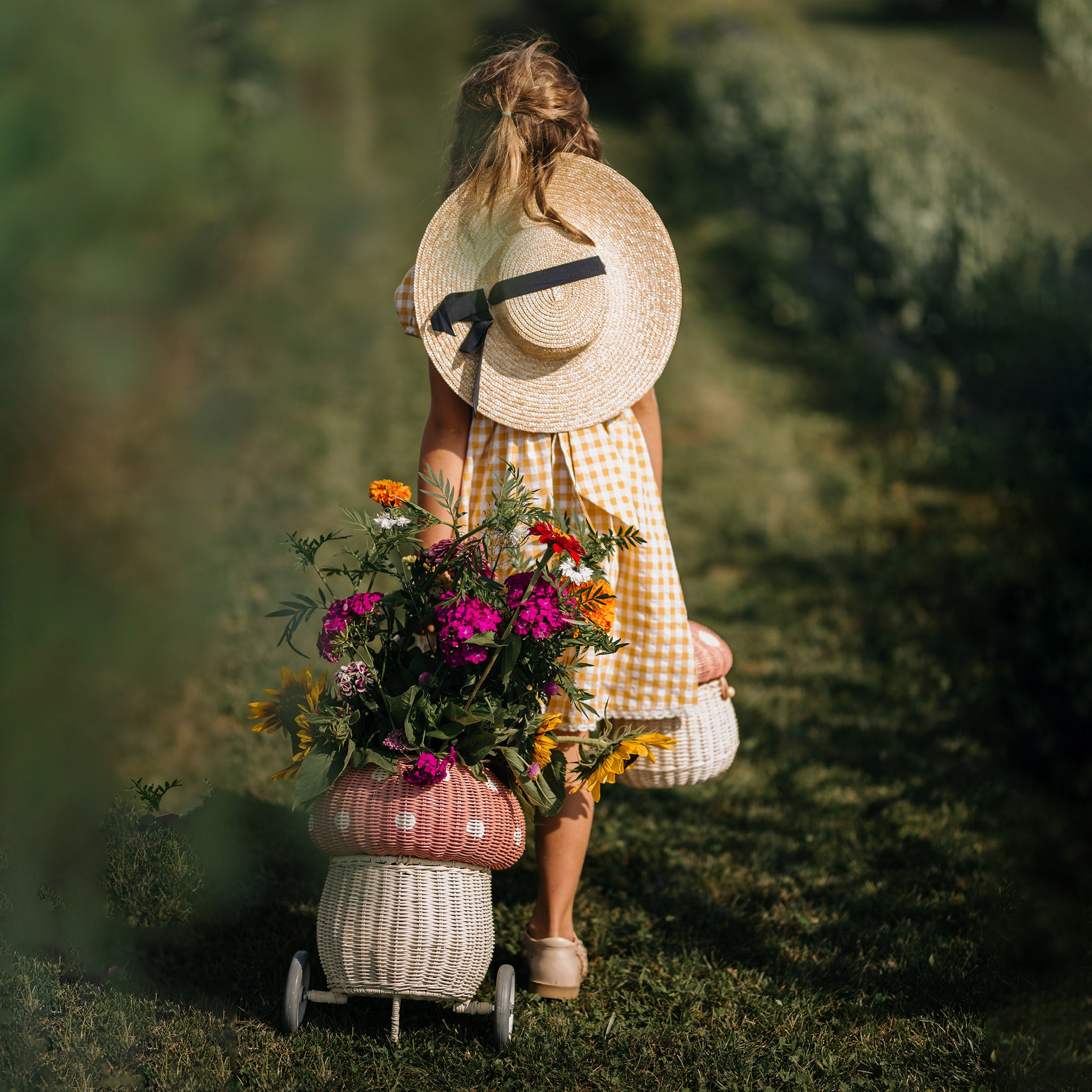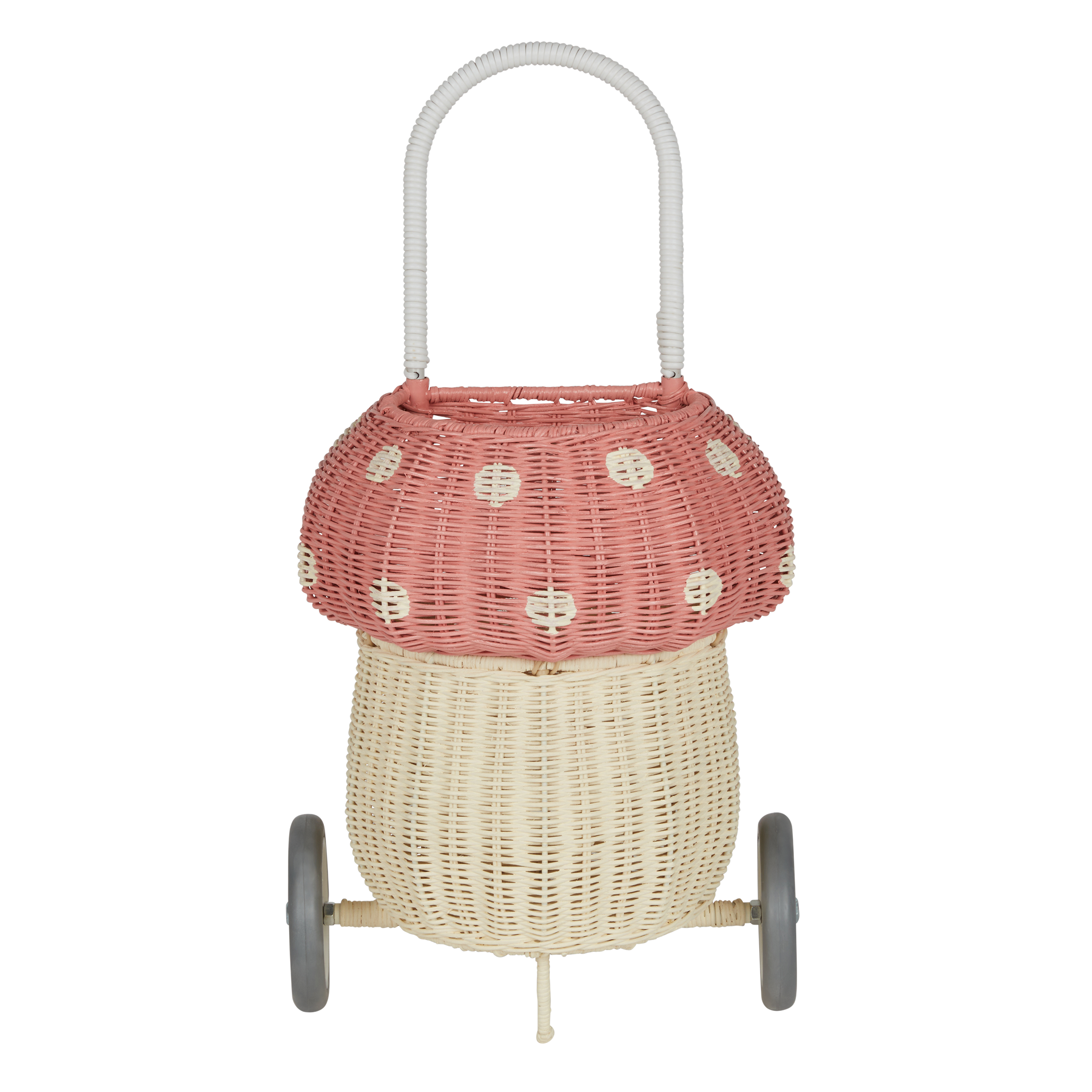 Meet our whimsical pink Mushroom Luggy. It exists in the world between practical and fairytale and is perfect for lugging about at home or on the go. Brimming with all the features that make our such a hit, this handwoven rattan wheeled basket is ideal for storing and toting around prized possessions! The Mushroom Luggy hits just the right notes of vintage and quirky and makes a beautiful addition to any woodland-themed nursery or bedroom. This Luggy is designed to roam wherever your child may go from the beach to the playground and everywhere in between. Cart and adventure with and friends! The Mushroom Luggy makes excellent toy storage when not in use too.